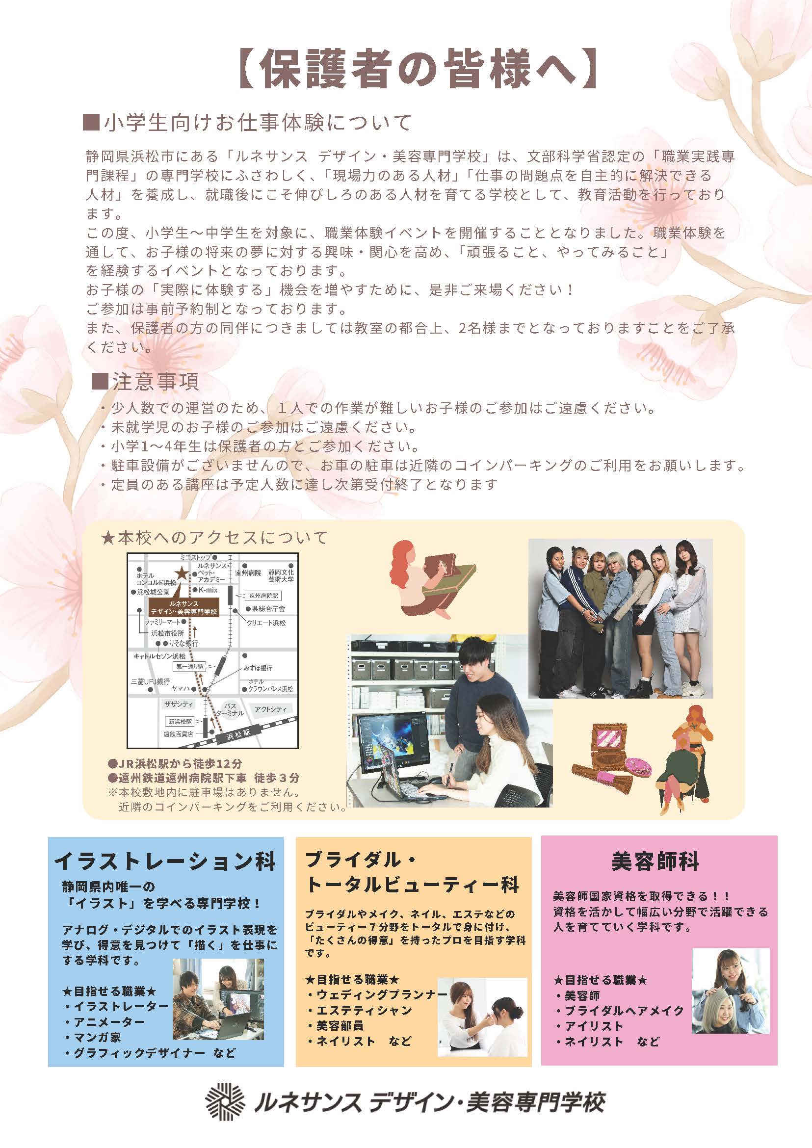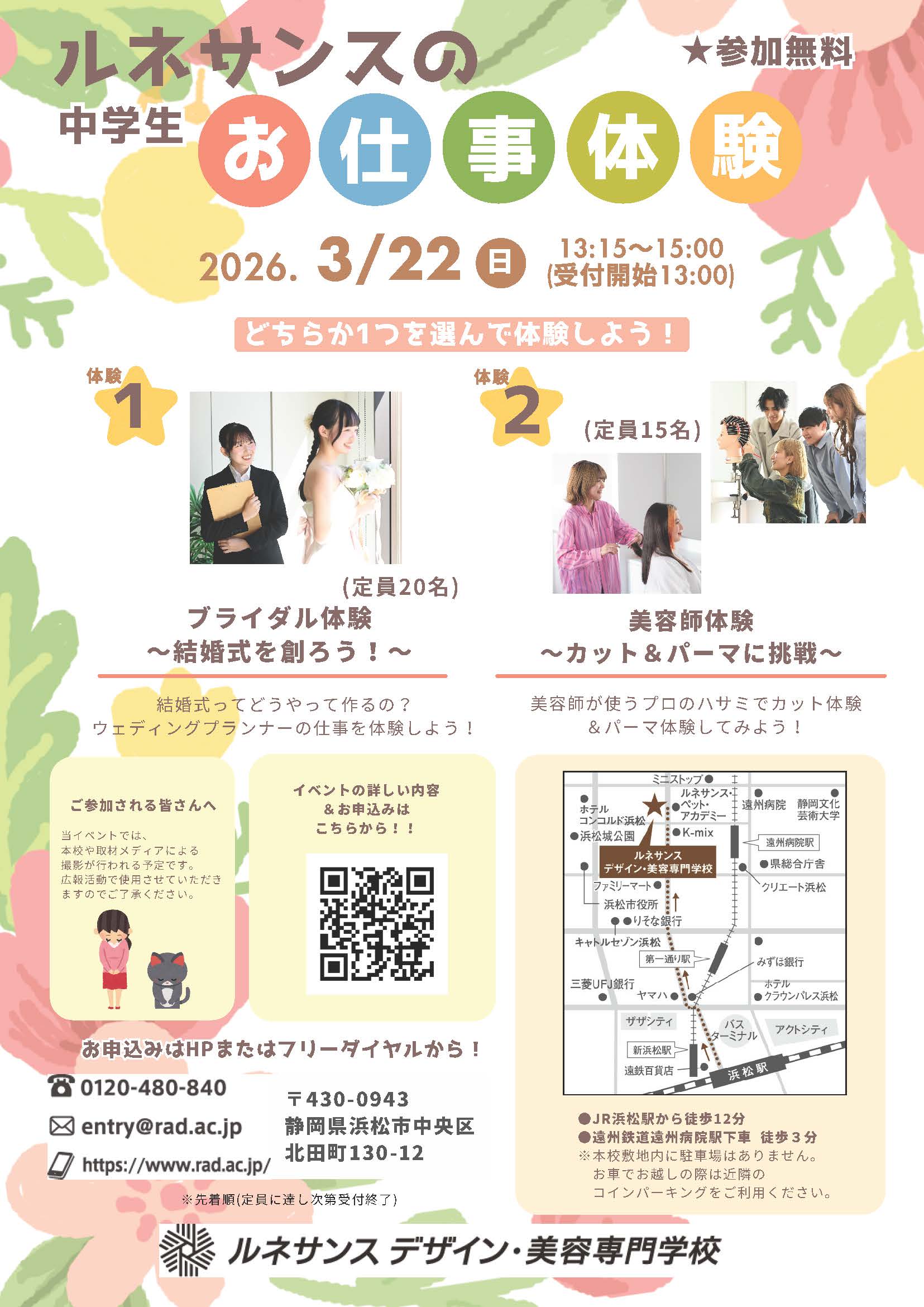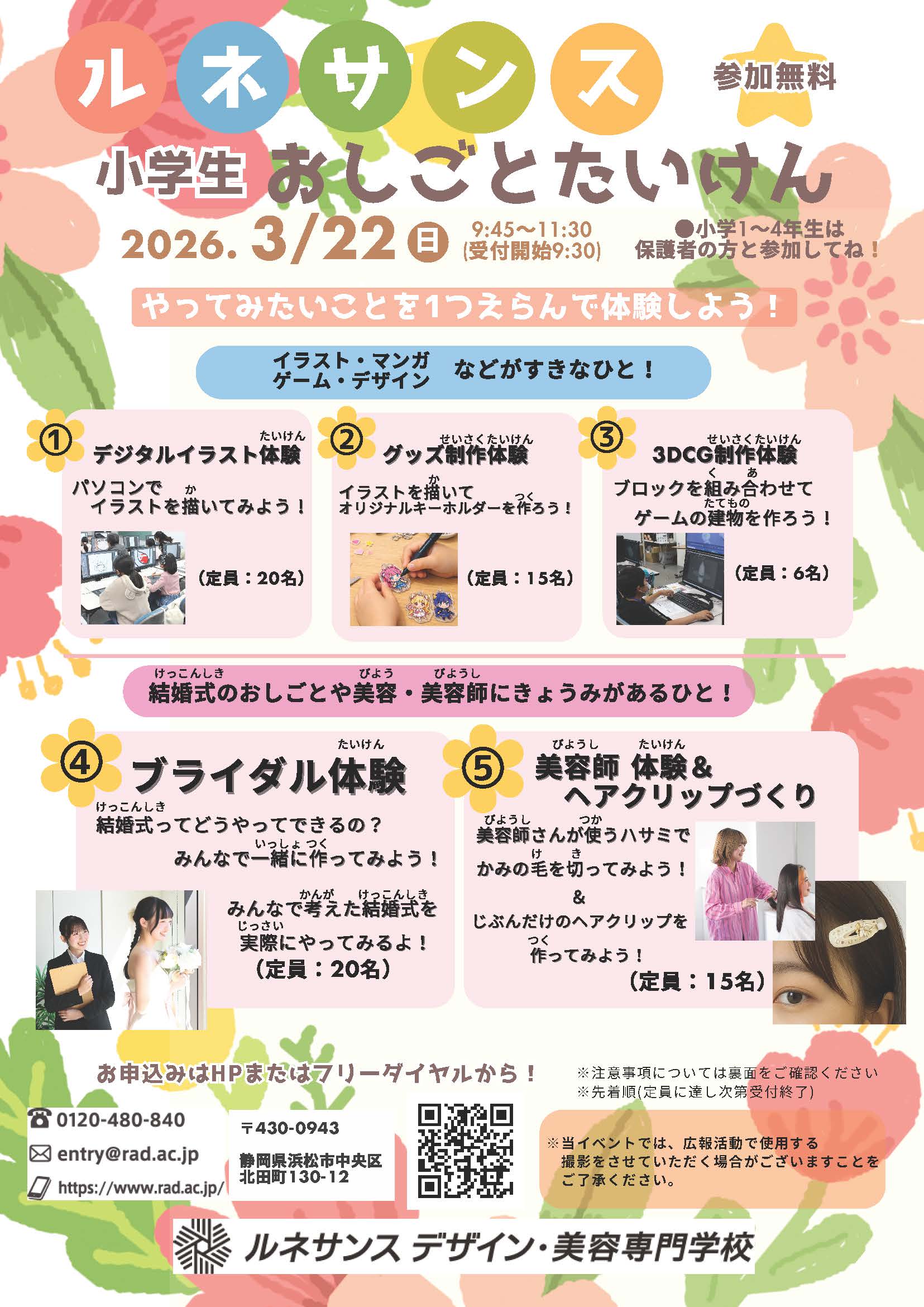 ルネサンス デザイン・美容専門学校では、3/22(日)に小学生・中学生向けイベントを開催!